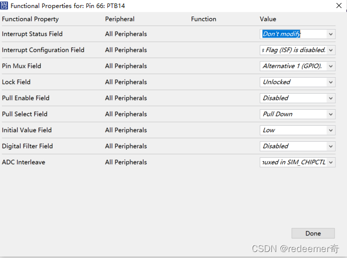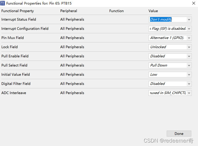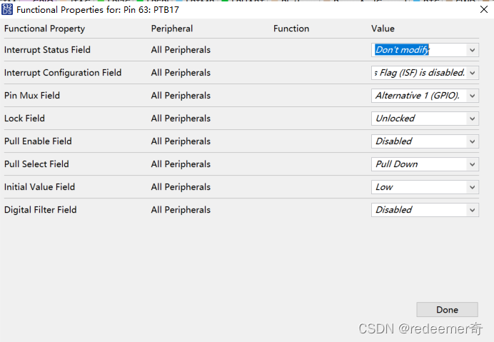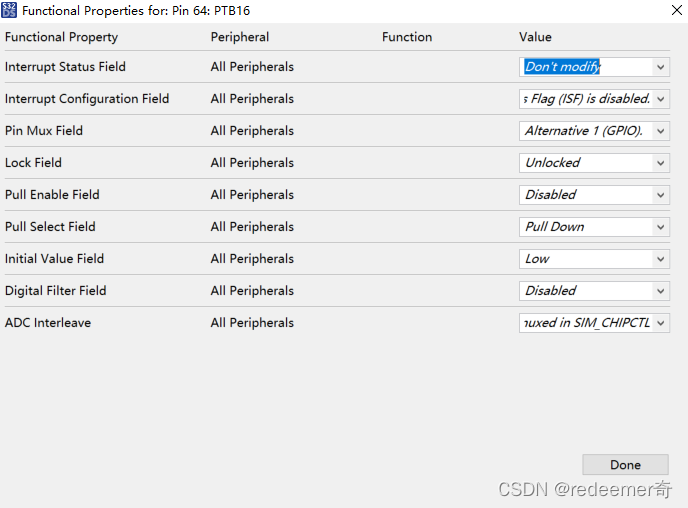 鼠标放在如下位置右击选择Pin Functional Properities,进入引脚属性配置