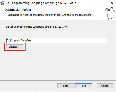 (5)默认安装位置在C盘,这里点击“change”进行更换安装位置