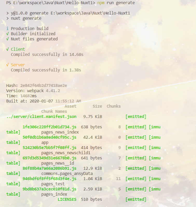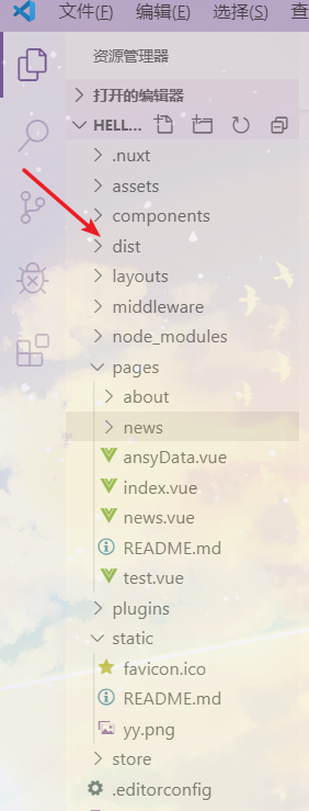 这个命令会创建一个 dist 文件夹,所有静态化后的资源文件均在其中。