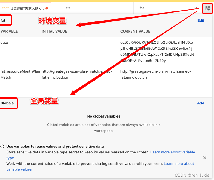 可以创建多个环境,每个环境下又可以有多个变量