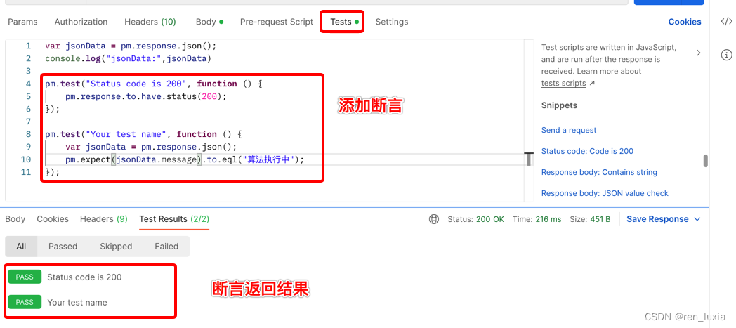 断言返回结果:TestResults