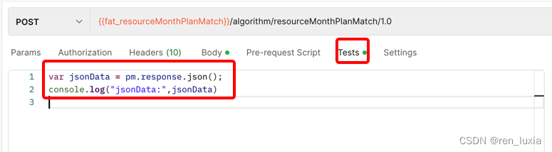 用途:在请求接口之前对请求数据需要进一步加工处理。eg:有的接口的输入参数有一些随机数,每请求一次接口参数值都会发送变化,就可以在前置脚本中编写生成随机数的代码;