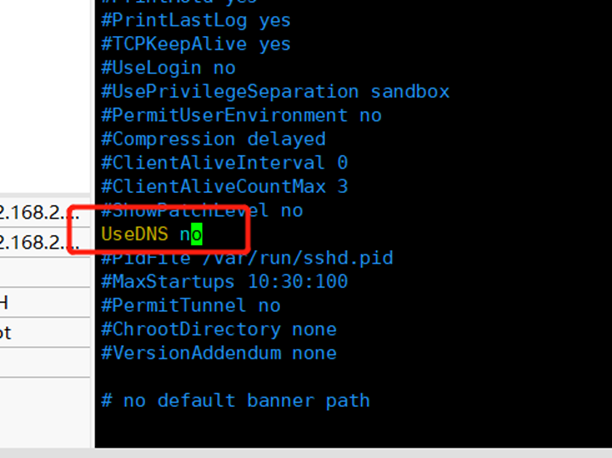 1、问题背景使用VM安装centOS虚拟机,在局域网中连接很正常;但是路由端防火墙设置对外端口映射后进行远程连接时,非常非常的慢,需要等待很久。2、问题原因连接慢一般是DNS解析导致,我们远程连接一般是通过ip连接,这儿不需要使用DNS解析,DNS解析过程会影响连接效率。3、解决问题更改配置文件vi /etc/ssh/sshd_config,注意区分ssh服务有配置文件sshd_config和配置文件ssh_config。将UseDNS的值置为no,默认情况UseDNS是被注