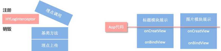 方法级别的统一埋点,比如详情页所有Item的展示,通过AspectJ对详情页Item的onCreateView方法进行,切割并注入埋点代码,使所有详情页展示埋点统一。