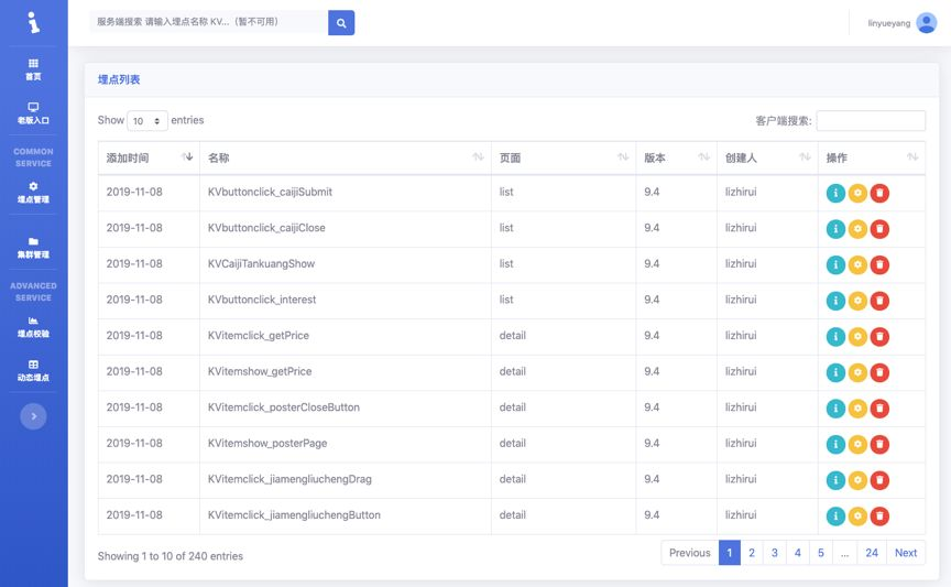 给数据策略同学提供埋点增删改查服务,记录修改状态,使埋点管理高效便捷。