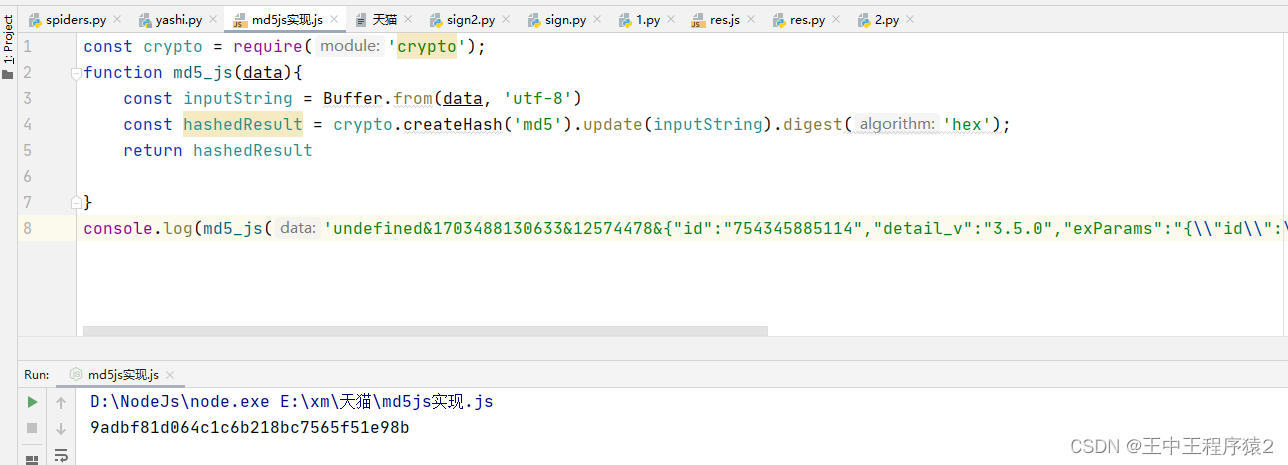 python中因为双引号\“导致nodejs和python使用MD5加密结果不一致的解决办法 使用md5加密一个字符串时,如果含有\",那么python调用nodejs加密和直接使用nodjs中加密的结果是不一样的。这是因为在js中\"被识别成了\"所以自动转成了\\",在python中\"则是"的意思所以导致最后结果出现了差异。所以如果要结果以js中为准的,就要让python中的\失去转义的作用,在字符串开头加个r就行了。如果结果以python中为准的就将js中\\"替换成"就行了。