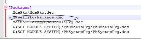 假设package 的名字是定义在 MawellPkg/Package.dec