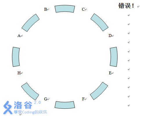 在长沙城新建的环城公路上一共有 888 个公交站,分别为 A、B、C、D、E、F、G、H。公共汽车只能够在相邻的两个公交站之间运行,因此你从某一个公交站到另外一个公交站往往要换几次车,例如从公交站 A 到公交站 D,你就至少需要换 333 次车。