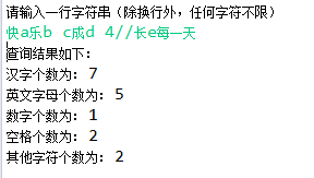 //题目:输入一行字符,分别统计出其中汉字、英文字母、空格、数字和其它字符的个数。