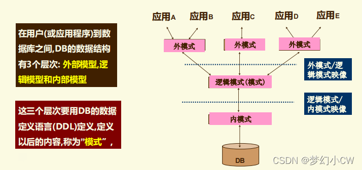 两级映象在DBMS内部实现这三个抽象层次的联系和转换