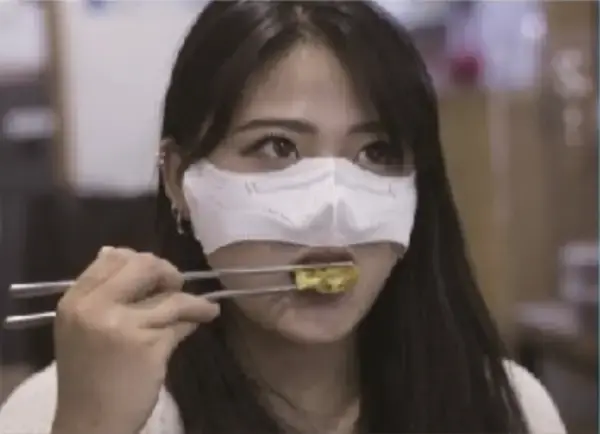一家韩国公司发明了可拆卸口罩。这种口罩分成两部分,下半部分可以取下,露出嘴巴,但是鼻子依然被遮住。根据这家公司解释,这样既方便在餐厅吃饭,又能提供一定的保护,吃完以后再把下半部分戴上。