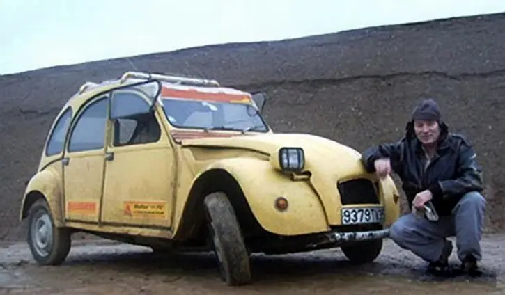 他做了一个大胆的决定,现场把小轿车改装成了摩托车。还真的改装成功,并且驶出了沙漠。