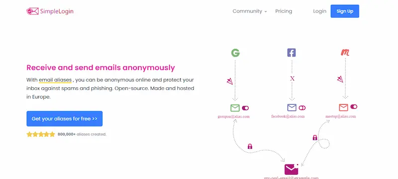 一个开源的邮箱别名服务,提供真实邮箱的别名,可以接收和回复邮件,所有邮件都会转到你的真实邮箱。它的免费版允许15个别名,但是代码开源,可以自托管。