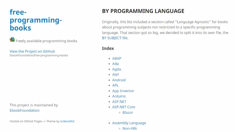 这是著名仓库 free-programming-books 的一个书单分类,列出各门语言的免费书籍。