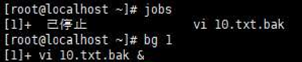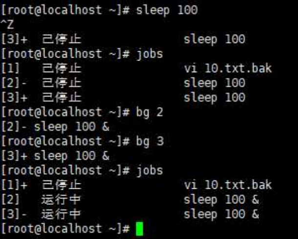 如果想重新调回,需要输入fg【id】,同理也可以使用bg (background)命令放到后台运行去,用法bg【id】