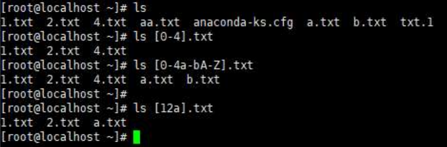 中括号【】,ls【0-9】.txt表示0-9范围内的任意.txt文件