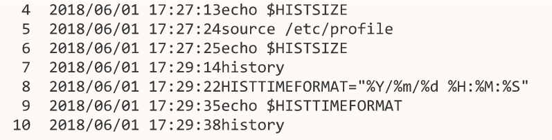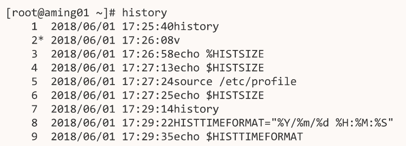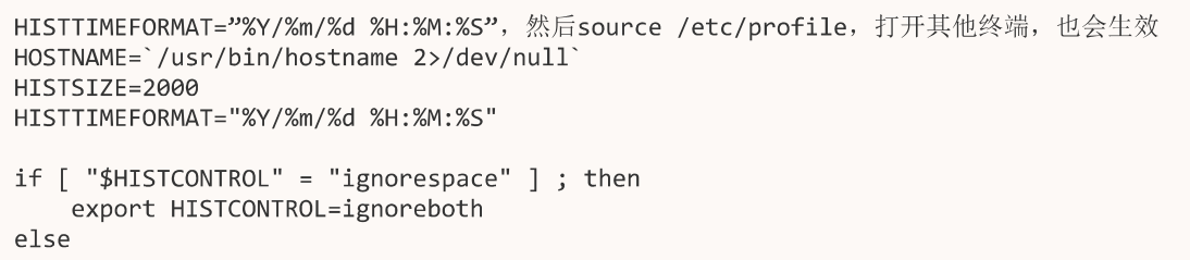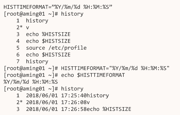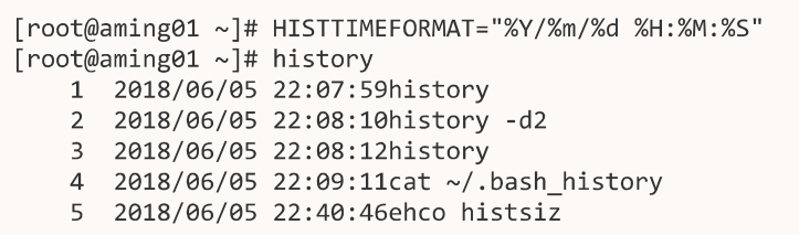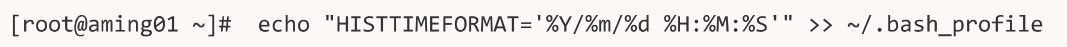 显示历史命令执行时间:设置环境变量:HISTTIMEFORMAT= “%Y/%m/%d %H:%M:%S” 可以显示历史命令执行时间