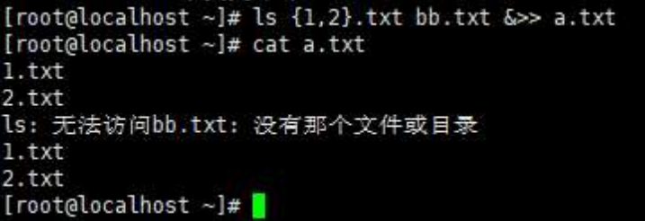 ls {1,2}.txt bb.txt &>> a.txt,表示将正确和错误的输出信息都追加到a.txt中