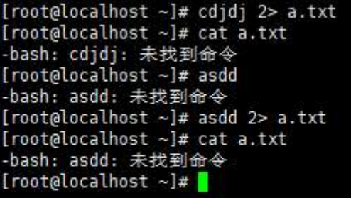 ls cdjdj 2> a.txt,2大于号表示将命令产生的错误信息输入到一个文件里去