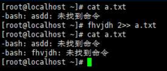 ls afhvjbh 2>>a.txt,表示错误信息追加重定向