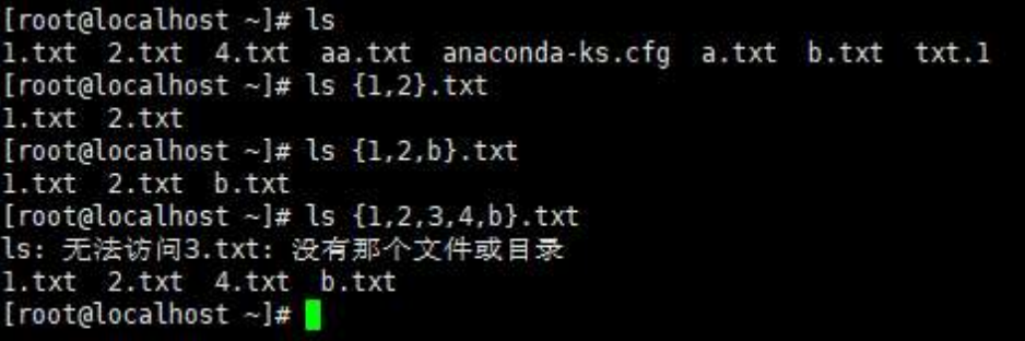 花括号{},ls{1,2,3}.txt表示括号内任意.txt文件