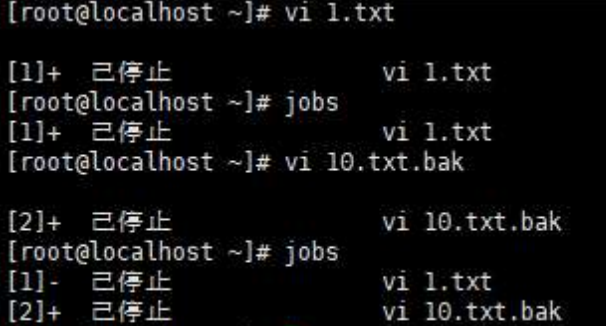 如果暂停多个任务,可以用jobs查看在后台运行的任务