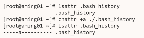 想命令历史永久保存并不被别人删除,运行chattr +a ~/.bash_history(只能追加,不能删除)