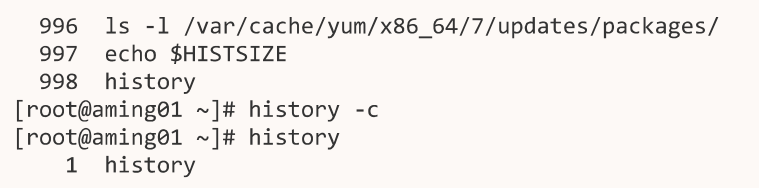 history -c命令,可以将当前内存的命令历史清空,但是不会清空/root/.bash_history里面的命令