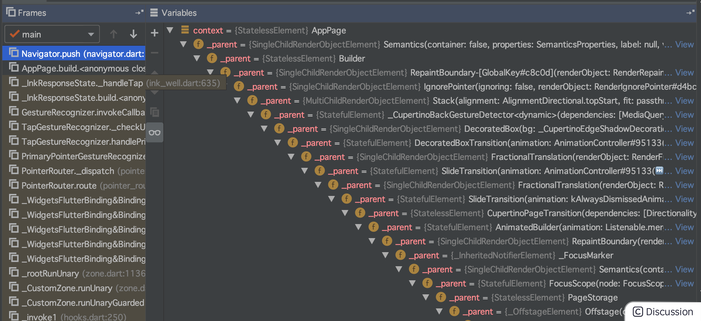由于这条树干太长,因此只截取了部分。可以看到上部分的顶端是AppPage,下部分的底端是MyApp,而中间是Navigator。