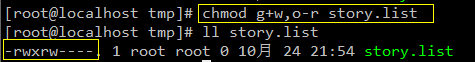 示例:在/tmp 下创建一个story.list 并查看其权限:-rw-r--r--