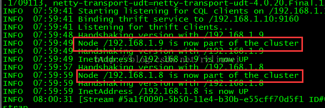 因为是前端启动,在192.168.1.10上可以看到过程,提示其它两个结点加入了集群。