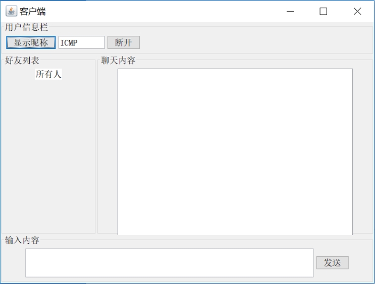 见 Client 和 server 文件夹中的源文件。同时若是想要运行,Client 中的 javaLogin.jpg 和 javaloginScheme.jpg 必须与字节码放在一起 。同时 server 中 userdata.txt 必须放在 out\production\Java 课程设计聊天系统\server\userdata.txt 的相对路径中或直接修改 ServerProgram.java 中第 39 行的路径