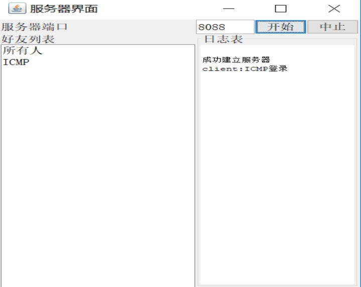 1. 当登录成功后,服务器会向客户端发送在线人员列表,客户端将在线人员添加至好友列表,2. 当之后有人上线下线时,服务器会将消息发至客户端,客户端依据添加删除在线人员。3. 同时点击好友,会显示与目标的过往聊天记录。 |