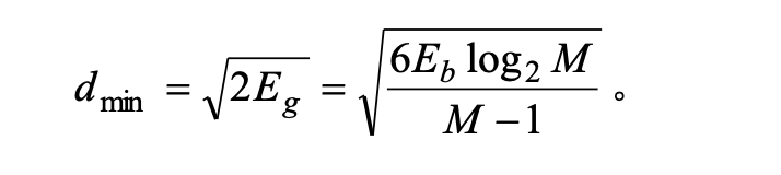 MQAM 的两相邻信号矢量的欧氏距离与 MPAM 的一样,其最小欧氏距离为: