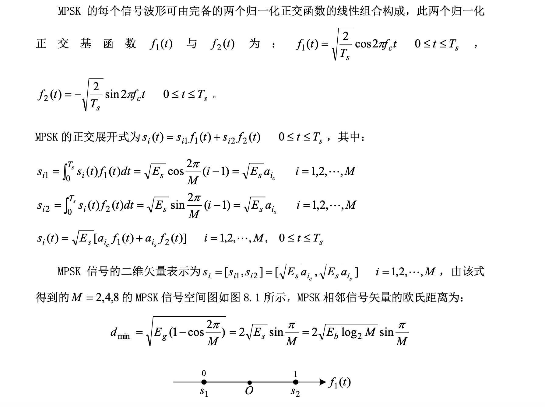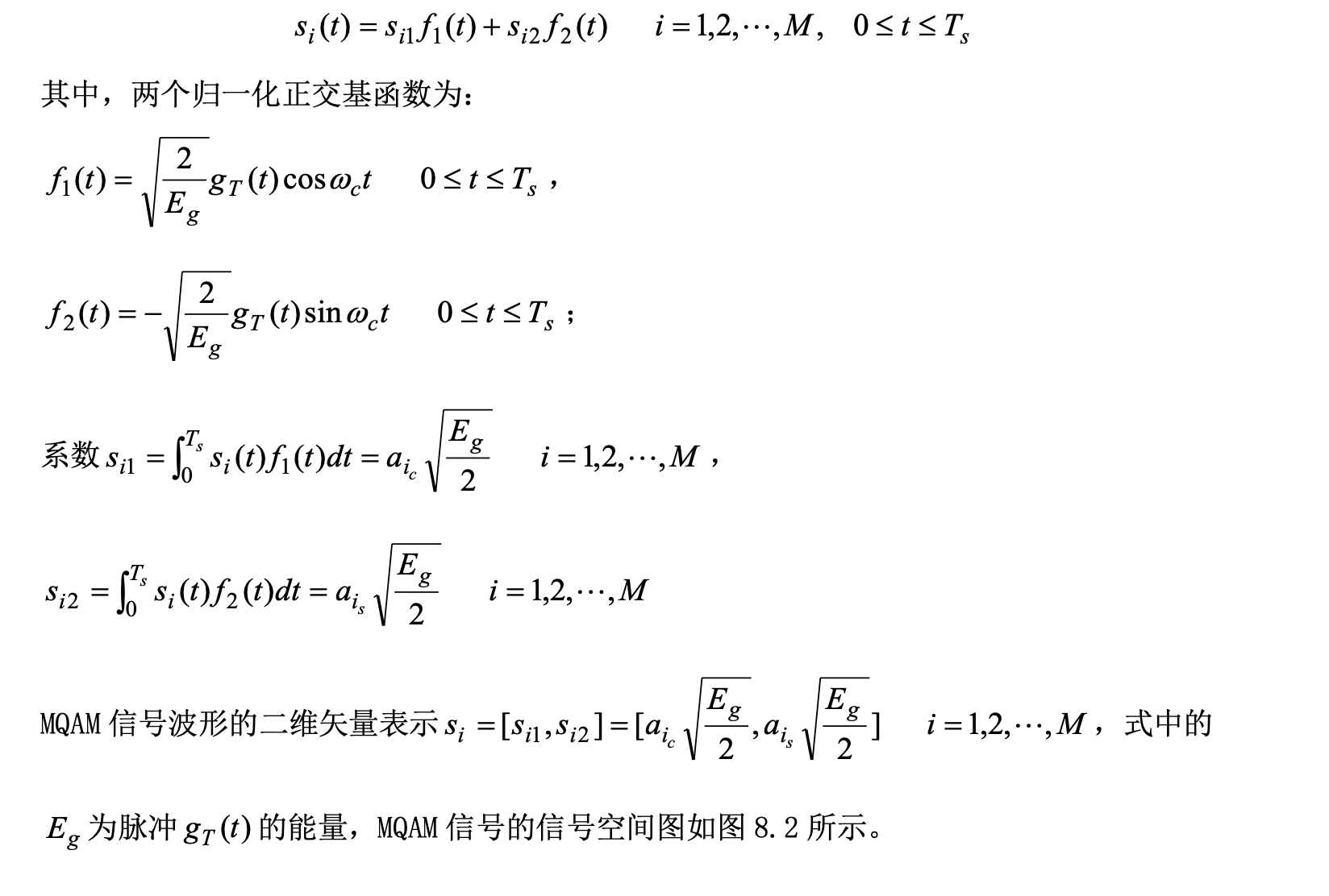 MQAM 信号波形可表示为两个归一化正交基函数的线性组合,即: