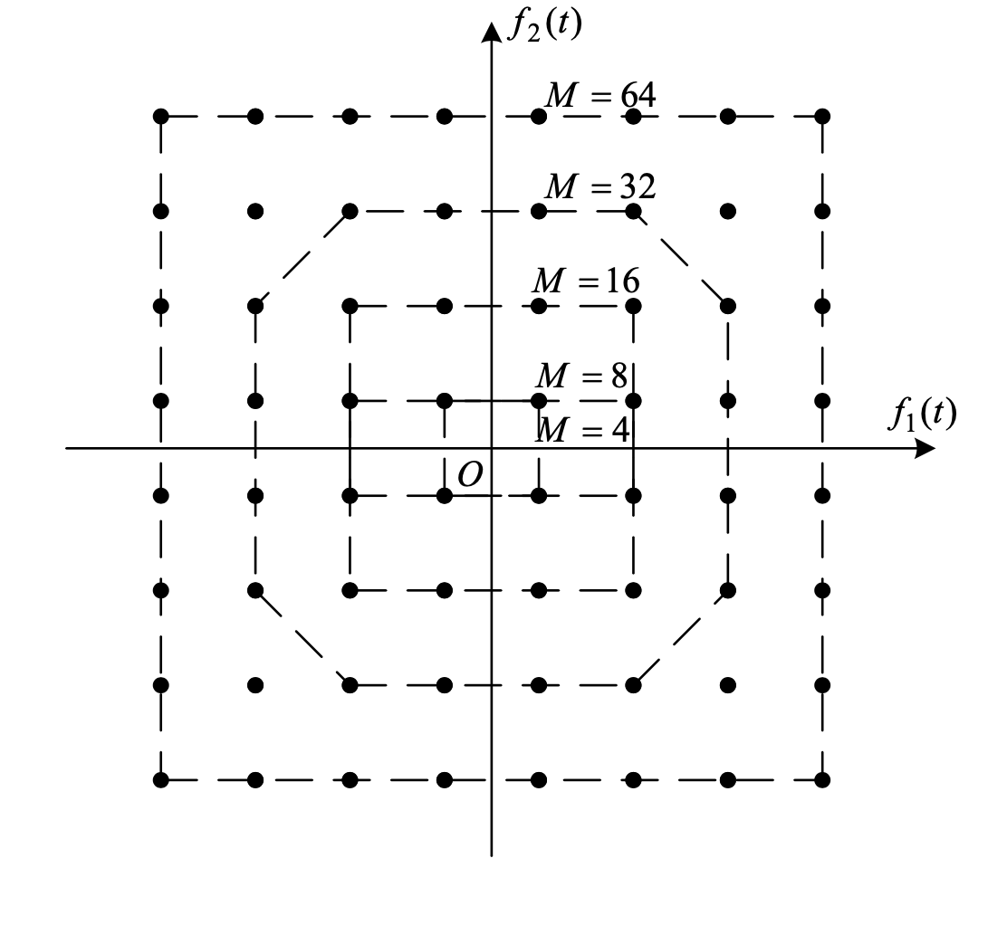 若 MQAM 信号空间图中矢量端点的分布是矩形的,即 MQAM 信号的星座图是矩形的,则