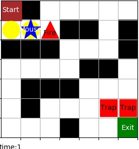如图,红色三角为火焰,和陷阱相同,老鼠可以走向火焰,但一旦走入就会导致游戏失败。
