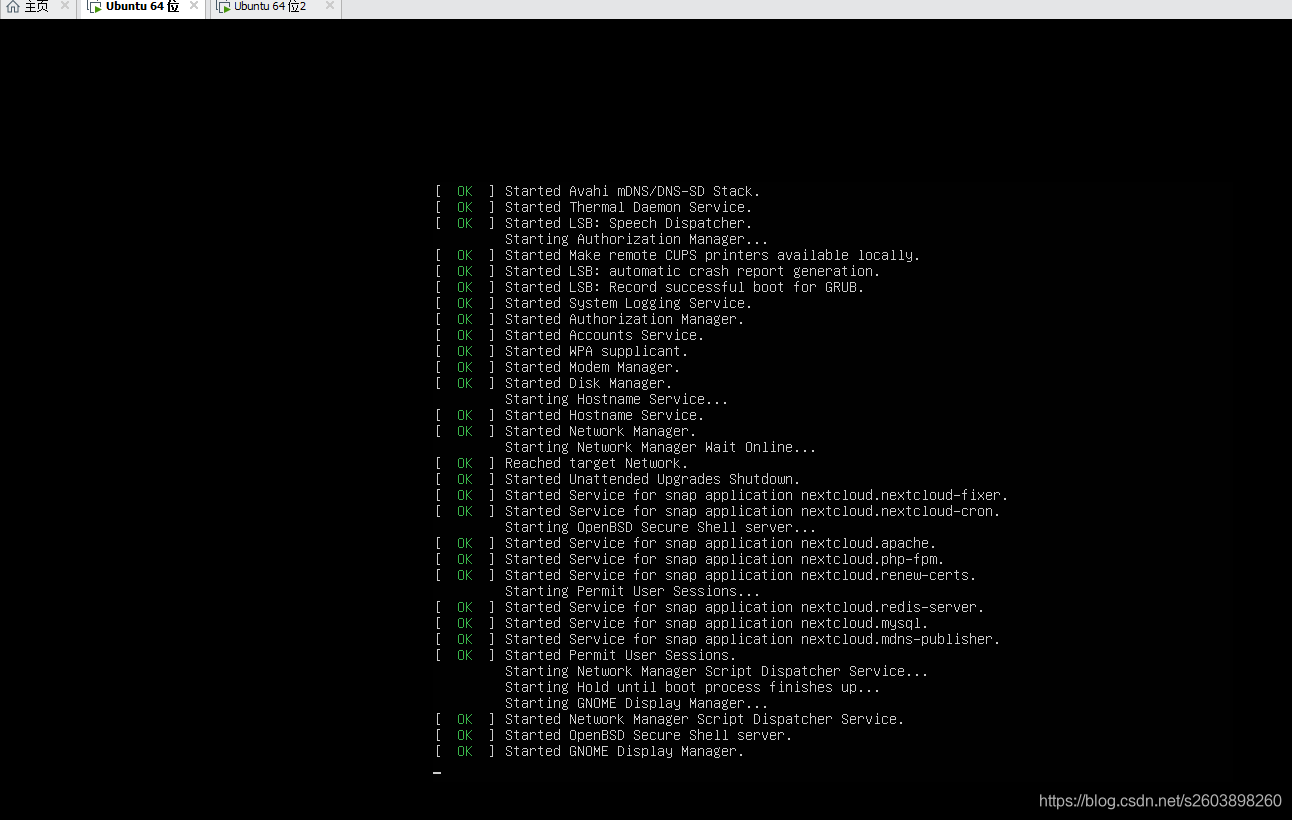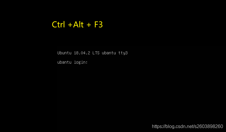 在上面那个页面,直接使用组合键:Ctrl + Alt + F3 便可以进入命令行模式。如果可以成功进入,则说明ubantu系统确实起来了,只是界面相关的模块没有成功启动而已。