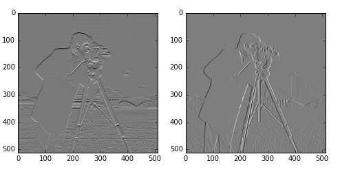 上边左图为检测出的水平边缘,右图为检测出的垂直边缘。
