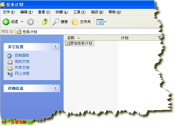 1.打开"我的电脑",依次打开"控制面板"->"任务计划",如下图所示。