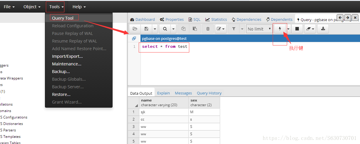菜单->Tools ->Query tool