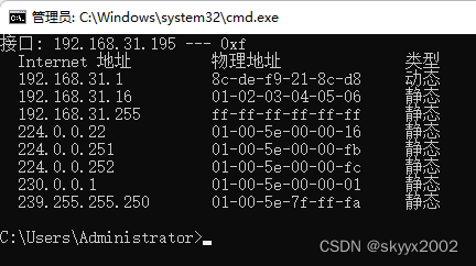 arp -s 192.168.31.16 01-02-03-04-05-06 192.168.31.195