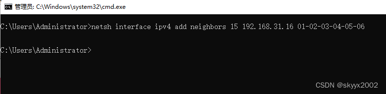 netsh interface ipv4 add neighbors 15 192.168.31.16 01-02-03-04-05-06