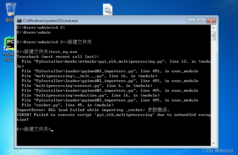 程序在win10环境下打包exe,pyinstaller==4.10,python version==3.8.0,后在win7运行出现以下错误
