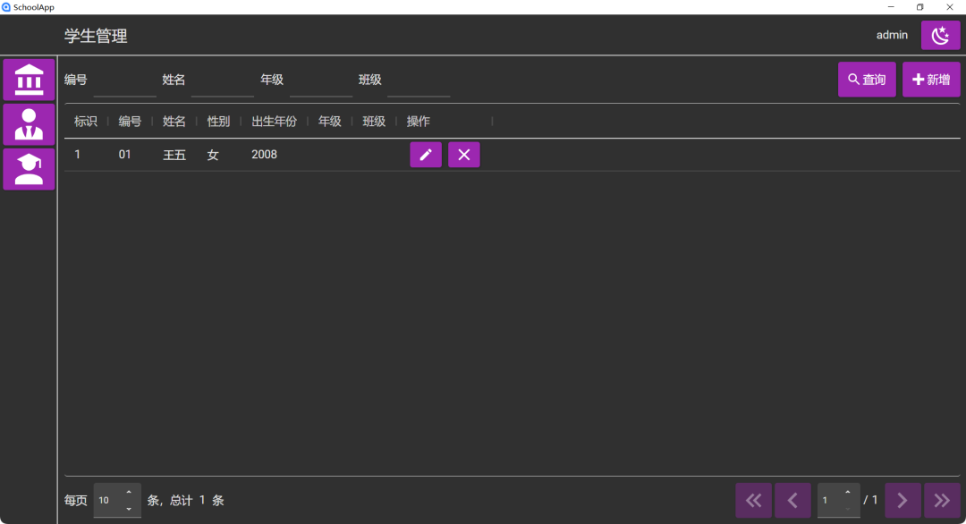 项目使用C#语言开发的学校应用材料管理系统,采用Avalonia UI框架作为前端界面,实现对学校中学生、教师以及班级信息的有效管理。