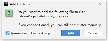 这个对话框的意思就是以后会自动add所有新添加的文件到暂存区。打上不再提醒的对勾,点击Add就大功告成了。