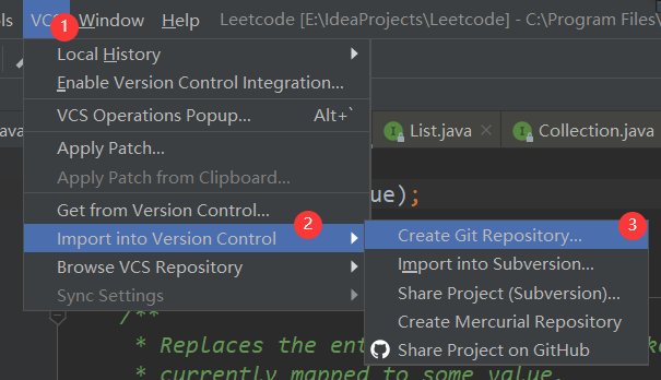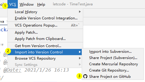 第三步:单机Share,会自动进行一个add+commit的操作。就是将创建的代码添加到自动创建的本地仓库(不要在意内容,笔者使用的不是空项目)。