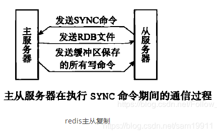 - 当主服务器的BGSAVE命令执行完毕后,主服务器后将BGSAVE命令生成的RDB文件发送给从服务器,从服务器接收并载入这个RDB文件,将自己的数据库状态更新至主服务器执行BGSAVE命令时的数据库状态。