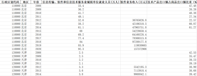 该数据集涵盖了2008年至2020年中国31个省、直辖市的数字经济关键指标,包括高技术产品出口额在商品出口中的占比、信息传输、软件和信息技术服务业城镇单位就业人员数量及软件业务收入等。这些数据揭示了中国数字经济的发展趋势和区域差异,为研究提供了详实的素材。
