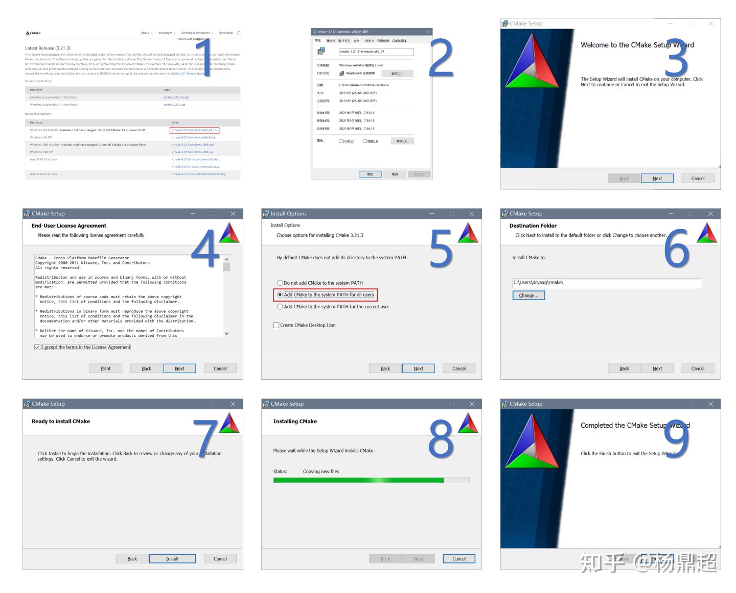 首先安装CMake,下图演示了大概安装流程: